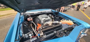 “I wanted something to play with while my Cuda was being done and I had my sights set on competing in a Goodguys autocross event, but the only one left in the east was Columbus, so I had a timetable.” With only had 5 weeks to prepare the car for the event, he dropped the Hellcat engine from a Challenger it right into the ’71 Chevy.